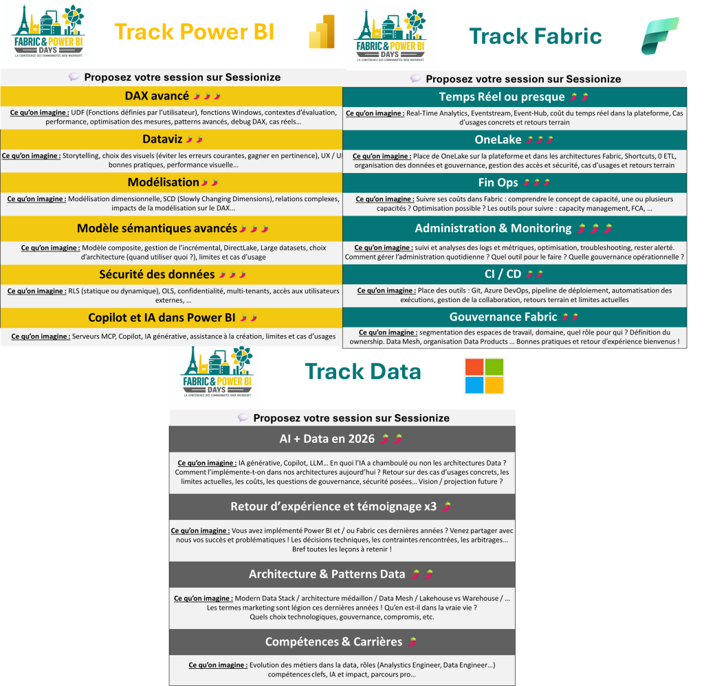 👉 Proposer une session : Fabric & Power BI Days Paris 2026: Call for Speakers @ Sessionize.com